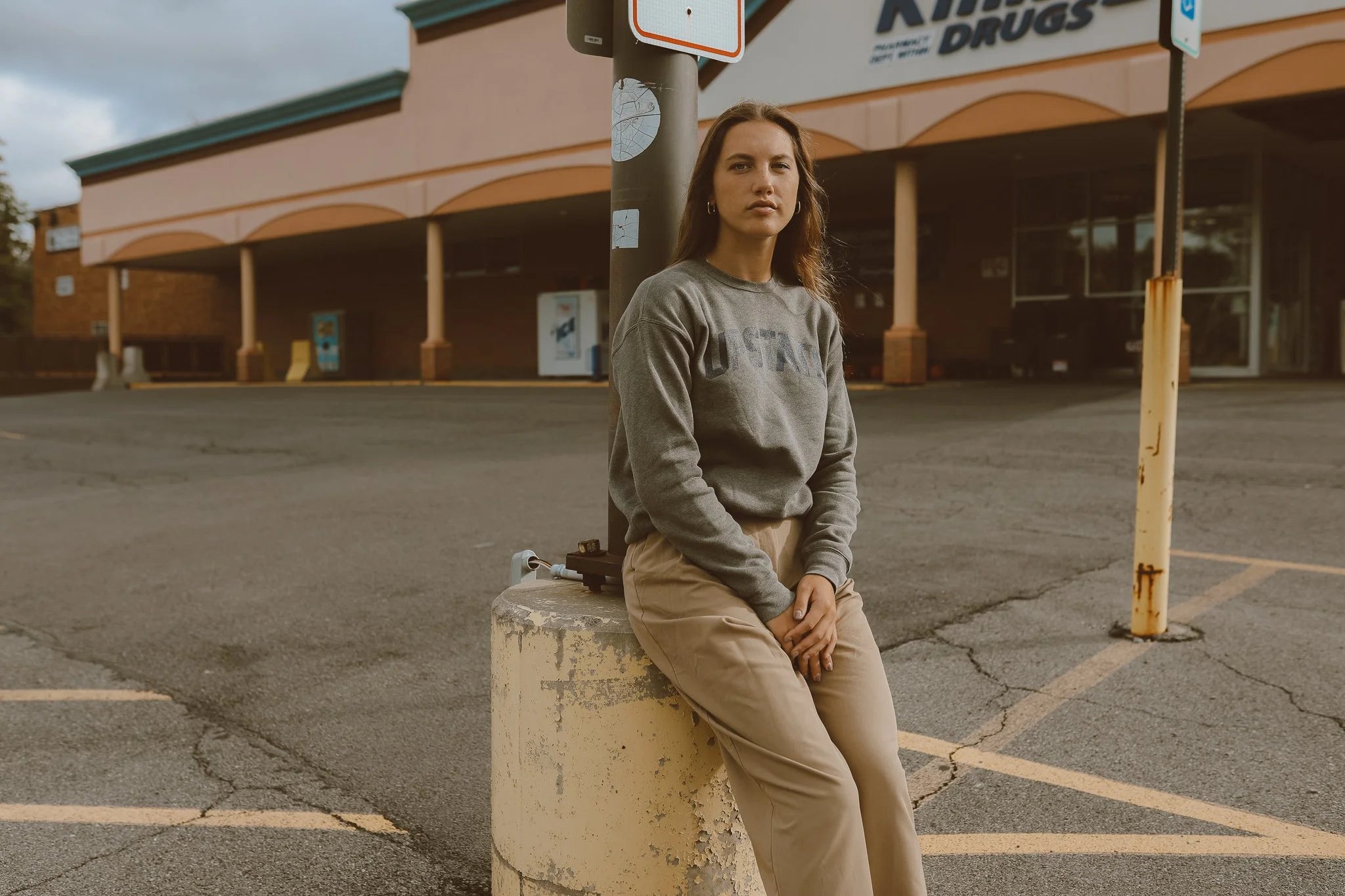 Reminiscent of your favorite high school sweatshirt. Soft and comfortable while still cool and fun to style. Professionally screen printed on a grey triblend sweatshirt with navy ink.