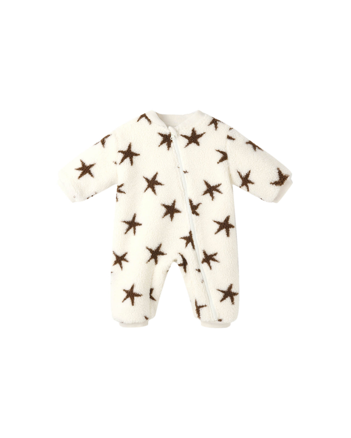 Bundle up your little one in our cozy shearling jumpsuit, featuring ribbed cuffs, a silky liner, and a coated metal zipper down the front. Sized for easy layering.