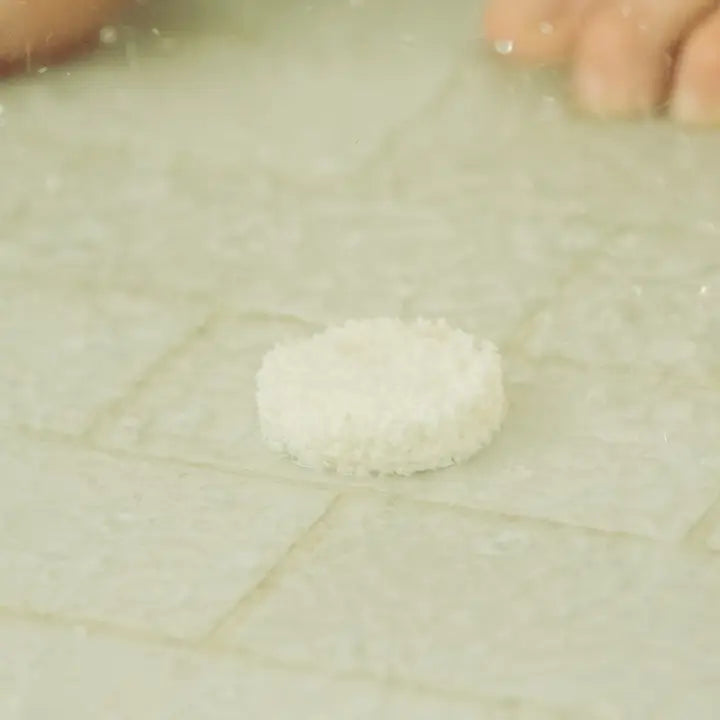 Storage note: if stored in places with fluctuating humidity and temperature, the rounds can form small feathery crystals, this is simply the mint oils and essential oils coming out of the pucks a bit and re-forming. It is perfectly fine and safe to use.