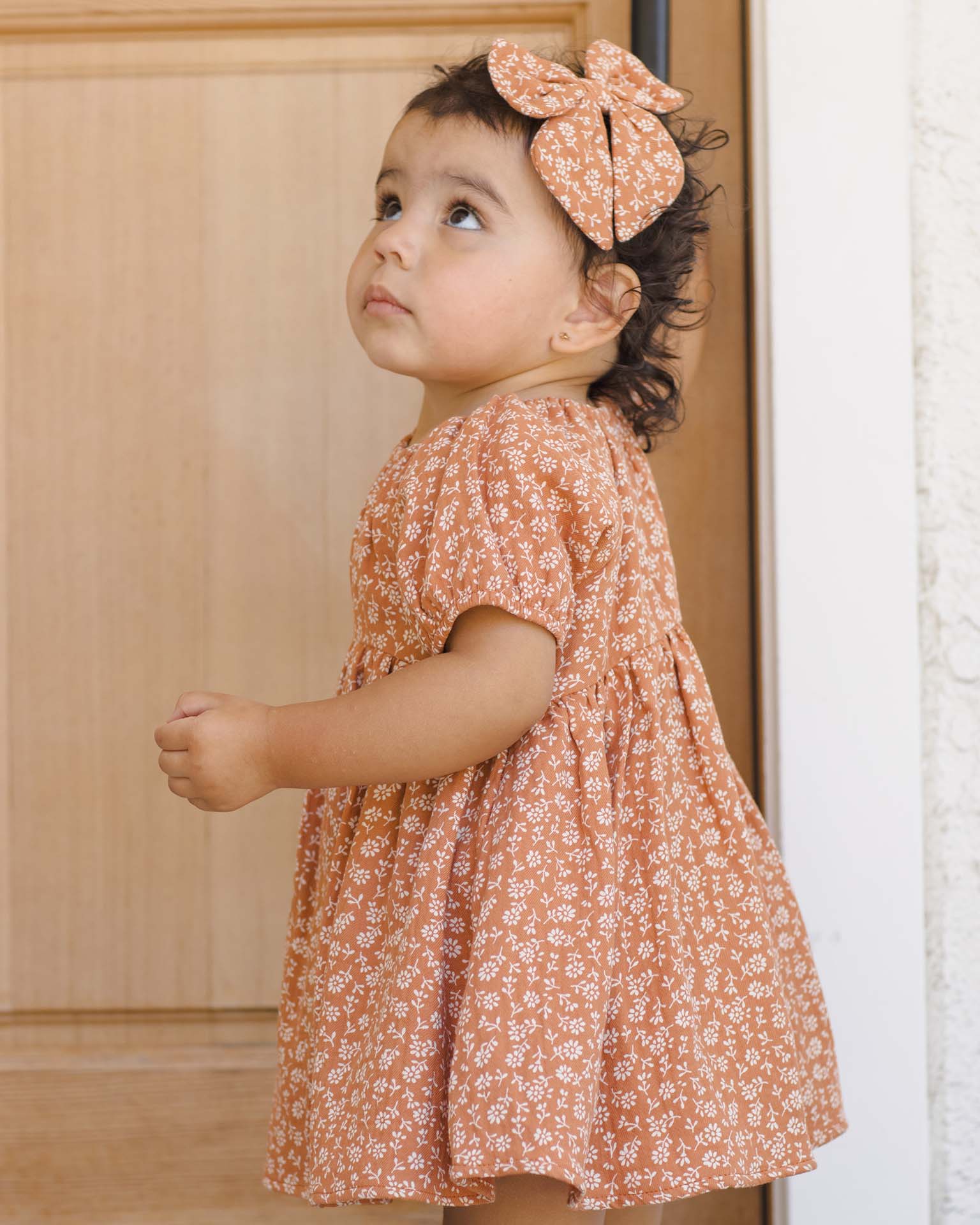 Our Bella Dress features an empire waist dress with balloon sleeves and a stretchy neckline.