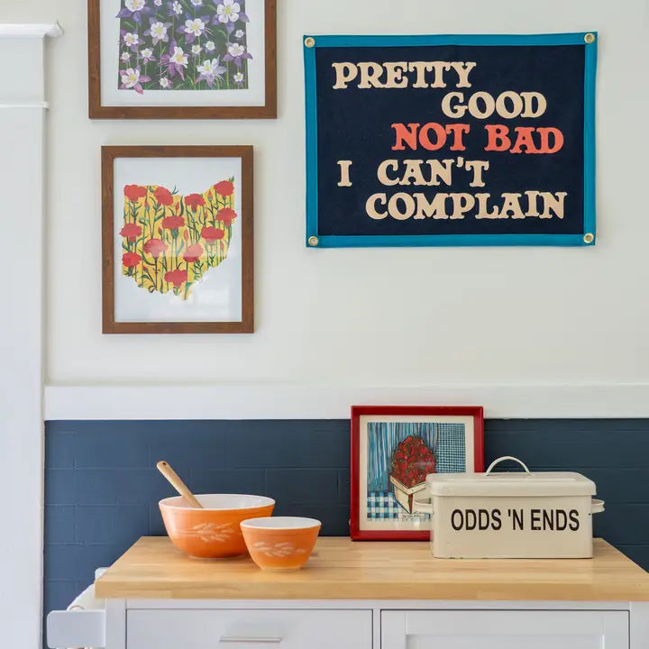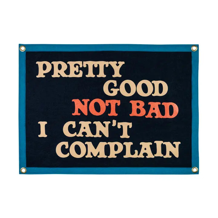 • Load image into Gallery viewer, OXFORD PENNANT Pretty Good Not Bad I Can't Complain Camp Flag • John Prine
