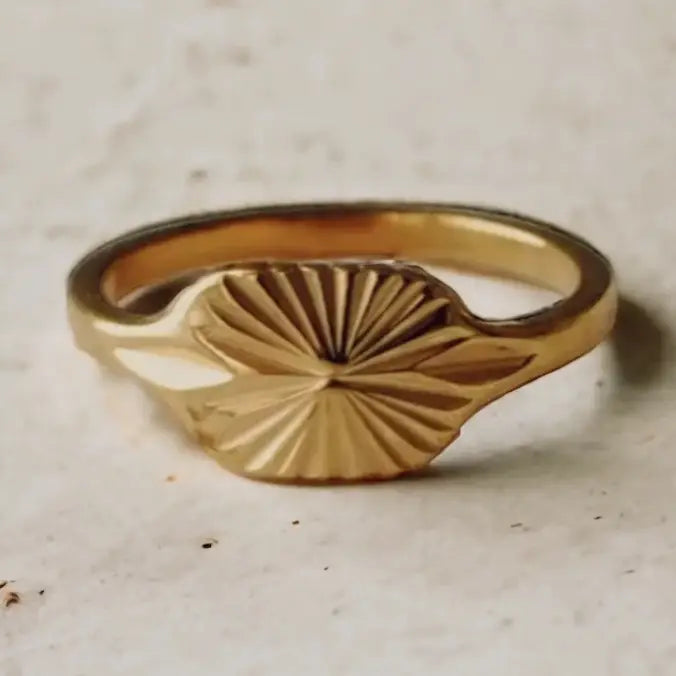 With an intricate sunburst design, our golden Helios Ring is a must-have piece for your jewelry collection.
