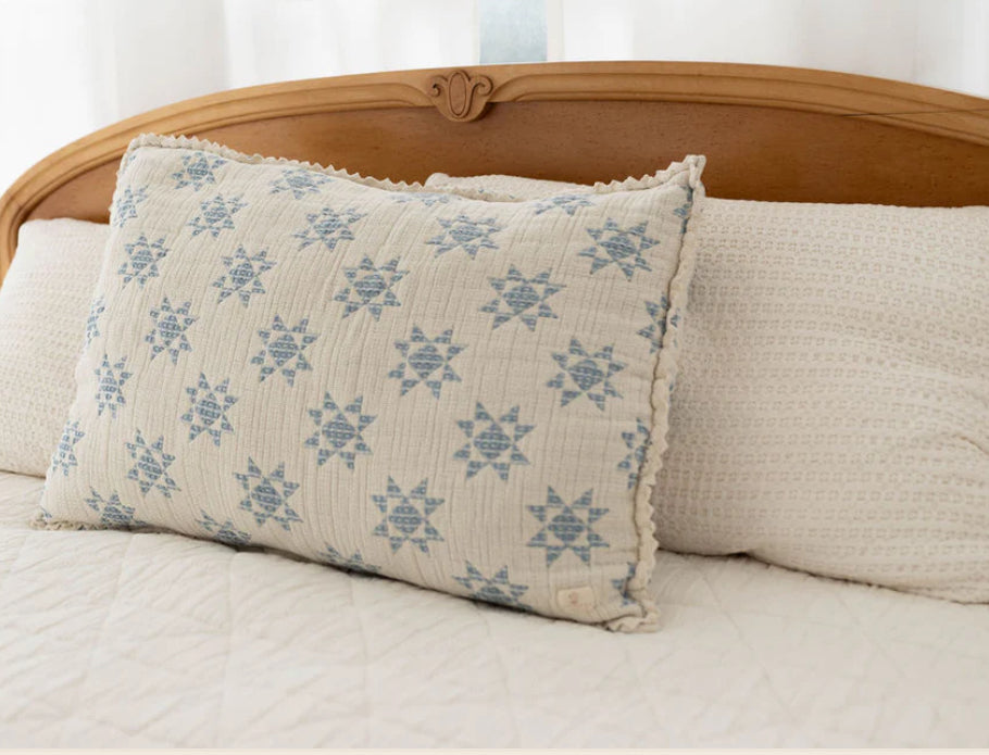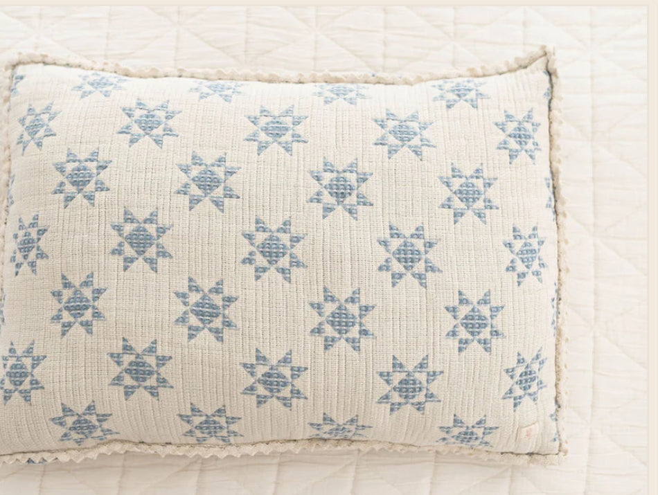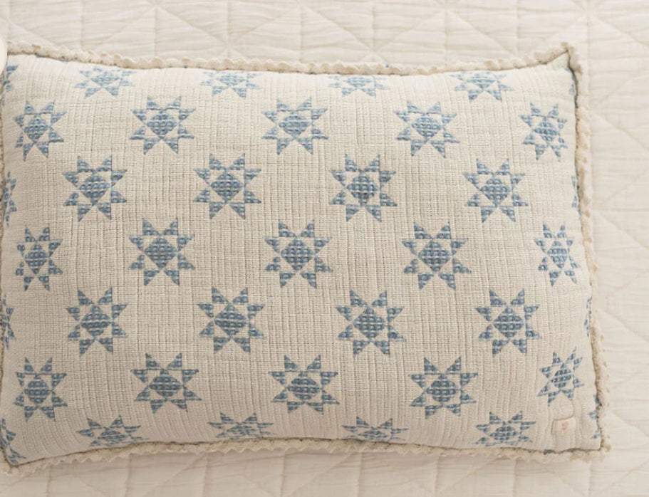 Cream background with beautiful sky colored stars and crochet trim