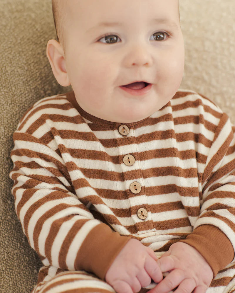 Our cozy Relaxed Jumpsuit, detailed with coconut buttons and ribbed trim is perfect for your little one’s fall and winter wardrobe. Bottom snaps on sizes 0-3M to 18-24M make for easy changes.